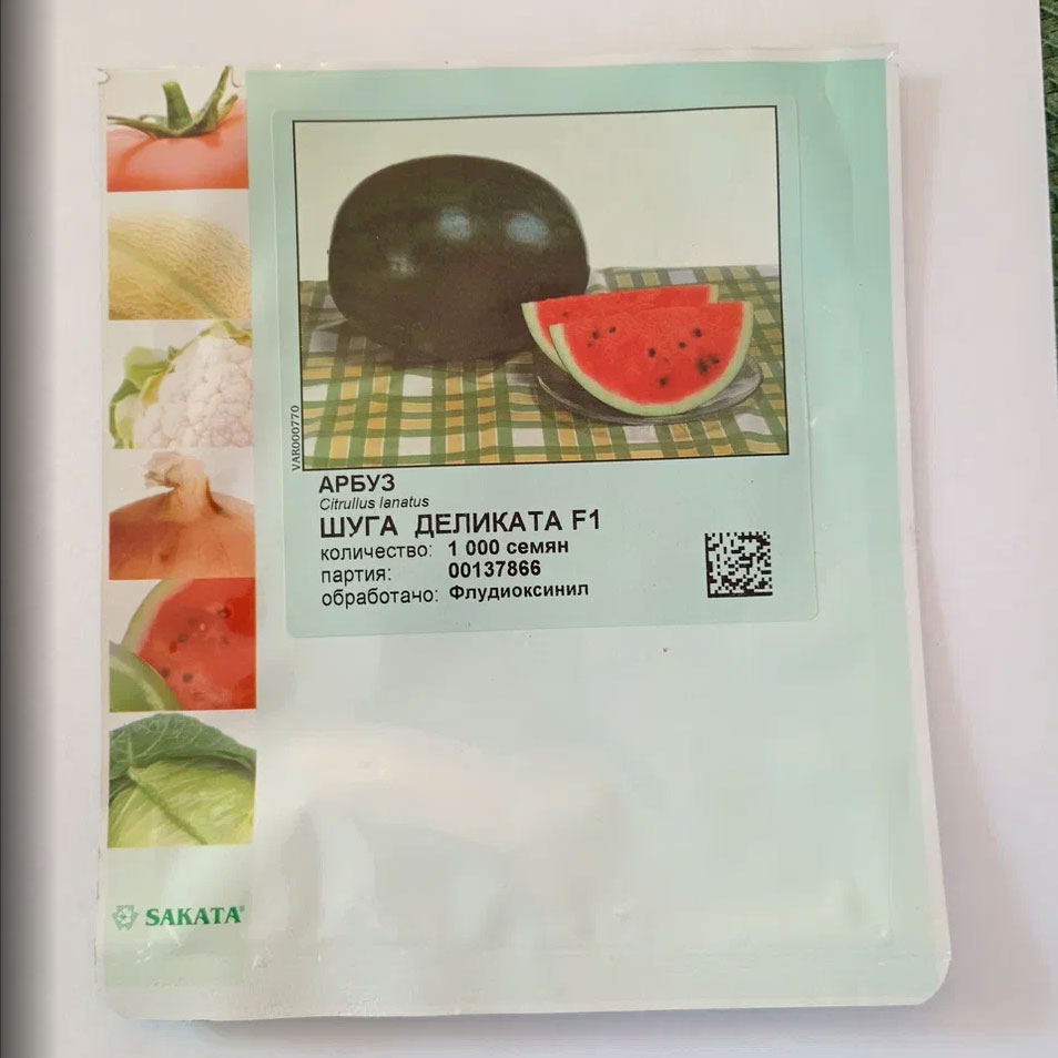 Арбуз Шуга Деликата F1 - один из самых ранних (60-70 дней от полных всходов до первого сбора плодов) крупноплодных гибридов для выращивания в открытом грунте и в пленочных теплицах. Растение компактное, с главной плетью средней длины. Плоды овально-круглые, темно-зеленые с зелеными полосами, массой 9-12 кг. Гибрид устойчив к фузариозу и антракнозу. Плоды однородные, сохраняют прекрасные вкусовые и товарные качества в течение месяца после съема. Посев на рассаду производят в конце апреля. Высадку рассады производят в грунт — в конце мая – начале июня в возрасте 30-35 дней. Растения подвязывают к шпалере (до высоты 50 см), удаляют все боковые побеги, последующие прищипывают над 1-3 листом или выращивают в расстил.