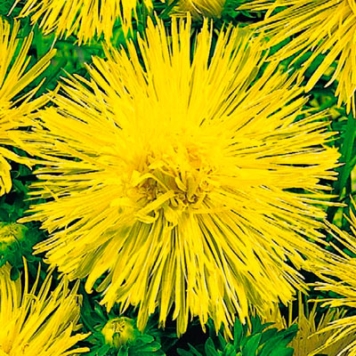 Астра Харц - это одна из популярных серий игольчатой астры. Куст высокий, 60-70 см в высоту, раскидистый с прочными цветоносами. Формирует 8-12 основных побегов. Соцветия крупные – до 14 см в диаметре, с высоким уровнем махровости. Соцветия состоят из длинных, скрученных в трубочку, ложноязычковых лепестков. Серия выращивается на срез в открытом грунте и теплицах, высаживается в садовые клумбы.