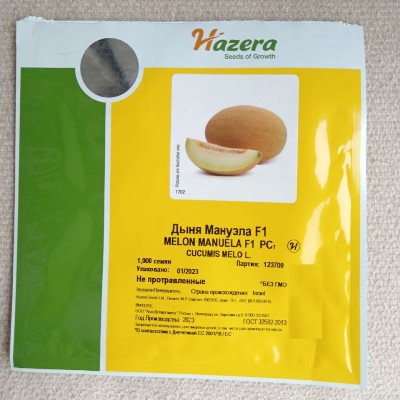 Дыня Мануэла F1 - израильская сортовая разновидность, очень ранний гибрид дыни, тип Ананас. Срок созревания 50-55 дней от высадки рассады на постоянное место и 65-70 дней от появления всходов. Гибрид отличается высоким урожаем первоклассной продукции. Плоды овальной формы, массой 1,5-3 кг, с кожурой темно-желтого, золотистого цвета с привлекательной мелкой сеткой. Сочная мякоть белого или кремового цвета, с ярко выраженным дынным ароматом и очень сладким вкусом, содержание сахара 13%. Куст крепкий, облиственный. Подходит для домашнего и промышленного культивирования. Средняя урожайность до 80 т/га, в зависимости от условий. Высокие товарные качества позволяют транспортировать урожай на дальние расстояния. Дыню Мануэлу используют не только в свежем виде и для приготовления фруктовых салатов, десертов, но и для вяления и получения цукатов.