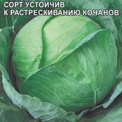 Высокоурожайный гибрид для длительного хранения. От всходов до уборки урожая 160-170 дней, от высадки рассады до уборки 120-130 дней. Кочаны округлые, темно-зеленые, очень высокой плотности, массой от 4 до 6 кг. Внутренняя окраска белая. Отлично подходит для зимнего хранения. Дружно созревает, что позволяет заготовить капусту в сжатые сроки. Не растрескивается, благодаря чему позволяет получить полноценный урожай даже при перепадах влажности и нерегулярных поливах. Обладает хорошей транспортабельностью. Устойчив к заболеваниям.