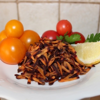 Морковь Шоколадный Заяц привлекает внешним видом, но ценится за богатый химический состав и полезные свойства. Крепкий корнеплод в форме удлиненного и заостренного конуса размером 20-30 см в длину и 2-3 см в диаметре, с множеством оттенков фиолетового, имеет оранжевую сердцевину и зеленую листву с перистыми листьями. Вкус необычный, сладкий, немного пряный, с хвойным привкусом розмарина. Мякоть сочная. В составе фиолетовой моркови много минералов и витаминов А, В, С, Е, бета-каротин, высокое содержанием антоцианов – растительных пигментов, обуславливающих пурпурный оттенок корнеплода. Самостоятельно организм их не вырабатывает. Благодаря наличию этих полезных веществ регулярное употребление фиолетовой моркови способствует усилению иммунитета, укреплению здоровья, содержит мало калорий и много клетчатки, хорошо насыщает, улучшает пищеварение, способствует усвоению питательных веществ. Фиолетовую морковь употребляют в свежем виде, добавляют в супы, соусы, в салаты, делают соки и маринады.