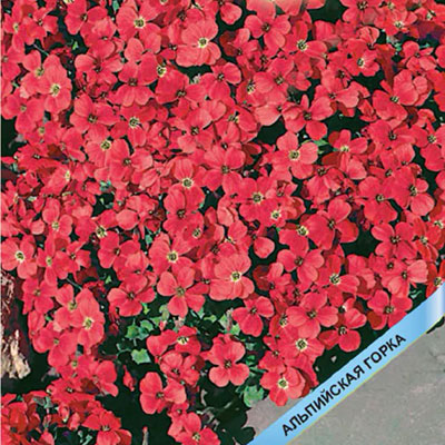 Обриета Красный каскад - растение со стелющимися побегами образует плотные ковры. Карминно-красные цветки собраны в кисти. После цветения желательно произвести обрезку цветоносов, чтобы ограничить рост и вызвать вторичное цветение осенью. Предпочитает солнечные участки, но выносит и полутень. Размножают семенами и осенним делением куста. Используется для оформления каменистых горок, балконов, подвесных корзин и кашпо.