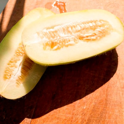 Огурдыня Каразелла продукт современной селекции – относится к скороспелым гибридам. Высоко ценится за необычный вкус и высокую урожайность. Селекционеры получили гибрид при помощи скрещивания ранних сортов дыни и неприхотливых сортов огурцов. Растение напоминает огуречный куст, с более крупными листьями, в высоту 2 м. Выращивают в горизонтальном или вертикальном положении. Форма плодов и вкусовые качества напрямую зависят от стадии спелости. Ранние плоды похожи на огурцы, только с более тонкой кожицей. Размер от 8 до 12 см. Окраска светло-зеленая, поверхность с мягкой опушкой. Плоды обладают удивительным свойством менять форму и цвет в процессе созревания. К моменту полного созревания плоды приобретают вкус дыни. Кожица желтеет и покрывается зеленоватыми полосами. Растения прекрасно себя чувствуют в открытом грунте в режиме выращивания огурца. От всходов до созревания 60-70 дн. На земле плоды овальные, выращенные на шпалере имеют форму банана. Длиной 10-15 см. и весом от 300 до 1000 г.