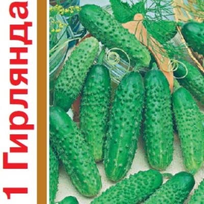 Огурец Гирлянда F1 - раннеспелый партенокарпический гибрид с букетным заложением завязей - до 4-5 в одном узле. Растение с мощным ростом, слабоветвистое. Плоды цилиндрические, длиной 12-14 см, темно-зеленые, частобугорчатые, белошипые, массой 120-130 г. Прекрасно подойдут для засолки, маринования и употребления в свежем виде. Гибрид устойчив к корневым гнилям, мучнистой росе, оливковой пятнистости, относительно устойчив к ложной мучнистой росе. Благодаря теневыносливости подходит для выращивания на балконе, лоджии и в комнатных условиях на подоконнике. Урожайность— 14-16 кг/м2.
