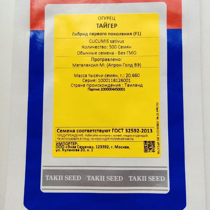 Огурец Тайгер F1 - японский гибрид первого поколения, среднеспелый, партенокарпический, салатный, для выращивания в закрытом и открытом грунте. Растение индетерминантное, средневетвистое, женского типа цветения, число женских цветков в узле 2-3 шт. Формирует крепкий стебель с несильным боковым ветвлением. Лист средней длины, зелёный. Зеленец средней длины, мелкобугорчатый с белыми шипами, цилиндрический, зелёный без полос или с очень короткими. Средняя длина огурцов 13-14 см. Масса зеленца - 110 г, очень вкусный и очень ароматный. Рекомендован для употребления в свежем виде и для переработки, для засолки, для консервации. Этот огурец ранний и первый урожай можно будет собирать через 40 дней после посева. Пик плодоношения этого сорта приходится на июль-август. Плоды огурца долго сохраняют товарный вид и хранятся в течение продолжительного времени после сбора. Это делает его прекрасным выбором для тех, кто занимается коммерческим выращиванием огурцов.