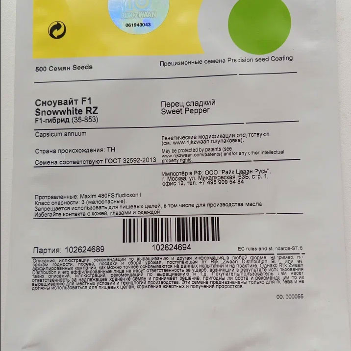 Перец Сноувайт имеет сильную корневую систему, а так же обладает сильным ростом. У куста хорошо развит листовой аппарат, что защищает плоды от солнечных ожогов. Гибрид имеет устойчивость к неблагоприятным стрессовым условиям выращивания, а так же к бактериальной пятнистости (расы 1-3), Y-вирусу картофеля (штамм 0) и томбавирусу. На 1 кв. м. закрытого грунта рекомендуется высаживать 3 растения. В теплично-парниковых конструкциях собирают 20-24 кг с 1 кв. м. Посевной период начинают с февраля — марта. Для рассады применяют кассетные ящички, торфяные горшочки, стаканчики. Кустики пересаживают в 2-месячном возрасте. Схема размещения – 3-4 куста на 1 кв. м. для открытых пространств. В теплицах высаживают не более 3 перцев на 1 кв. м. Дистанция между лунками — 40 см, между рядками — 80 см. Чтобы урожаи были максимальными, кусты формируют. Прищипывают пасынки и листья, ограничивают рост вегетативной массы. Должен оставаться куст с 2 основными скелетными стволами. Подкормки требуются до 3-4 раз за сезон.
