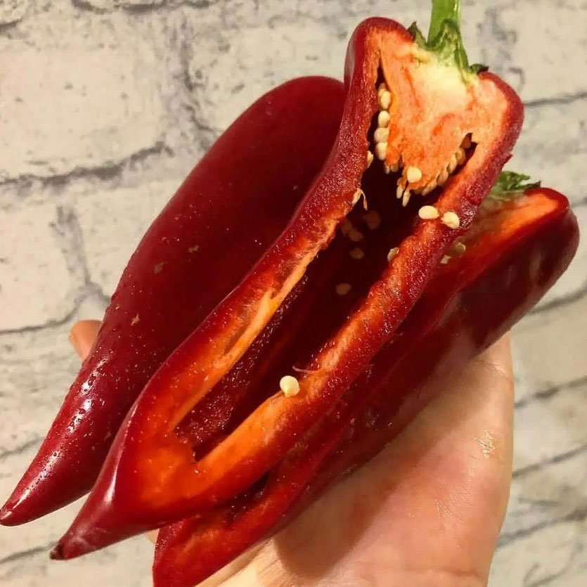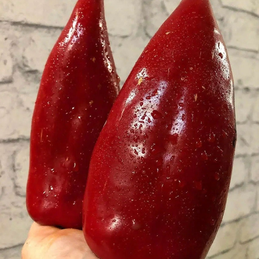 Перец Софийская Капия - болгарская селекция, очень сочный, вкусный, хрустящий, с насыщенным перечным вкусом, настоящий болгарский перец, вкус настоящего солнечного болгарского лета. Сорт среднеранний, период созревания: июль-сентябрь, урожайный. Выращивают и в теплице, и в открытом грунте. Везде растут одинаково, не смотря на прохладные ночи. Плодоносит до середины сентября на открытой грядке и до середины октября в теплице. Куст невысокий, до 60 см и компактный. Листьев не много. Плоды все одного размера, до 20 см, толщина стенки плода, 5-7 мм, конусовидные, насыщенного темно красного цвета. Используют для свежих салатов, закусок, готовят традиционное лечо, запекают, замораживают, сушат и вялят. Уход минимальный, формирование куста не требуется. При этом это не гибрид, а сорт, собранные семена можно посадить на следующий год.