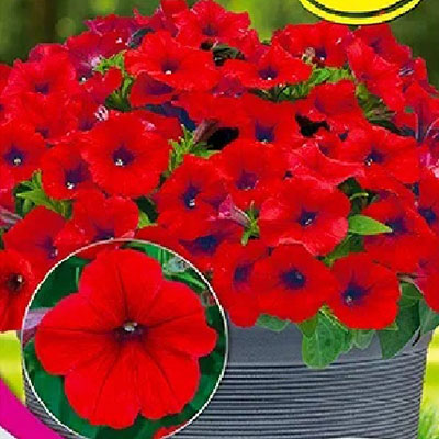 Петуния Изи вейв F1 красная - это знаменитый ампельный гибрид с обильным цветением. Один из самых лёгких в выращивании. Формирует цветущий «купол» высотой 20- 25 см над кашпо и интенсивно наращивает плети длиной 75-100 см. В ландшафтном варианте образует сплошной красочный ковер высотой 15-30 см, в зависимости от расстояния между кустами. Цветение плотное (не видно листвы). Цветки имеют нежный фиалковый аромат. При контейнерном выращивании необходимо обеспечить не менее 7-8 л грунта на одно растение.