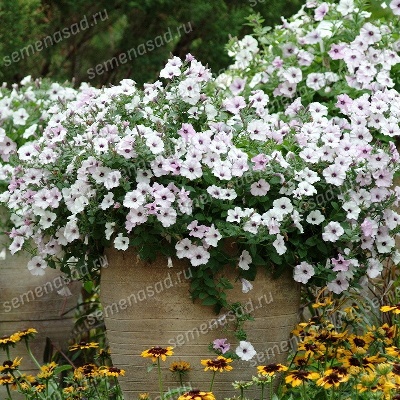 Петунии серии Тайдал Вейв - это необычное каскадное стелющееся растение, полностью отличающееся от остальных разновидностей данного цветка. Оно выделяется особенно стойким и крепким здоровьем, благодаря чему обеспечивается устойчивость к ломкости. Это позволяет выращивать его в странах с тяжёлыми климатическими условиями. Куст вырастает достаточно пышный, в высоту достигает показателя 55 сантиметров, а также формирует обширное количество цветков. Лепестки могут быть как гладкими, так и махровыми. Размер одного бутона может достигать 5,5 сантиметра, а высота ветки – до полутора метров. Купить петунию Тайдал Вейв Сильвер можно в нашем интернет-магазине.