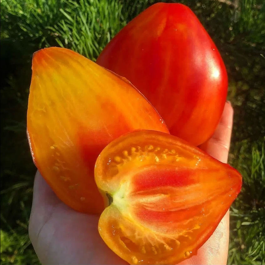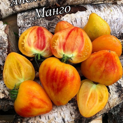 Семена редкого коллекционного сорта томата Апельсиновое Манго. Сорт - очередной шедевр красоты, выведен Сааковой Софией. Родителями томата Апельсиновое манго являются Синий апельсин и Сердце Ашхабада. Индетерминантный, высокорослый (кусты высотой 1,8 - 2 м), среднеспелый, супер урожайный. Плоды красивой сердцевидной формы, желто оранжевые с румянцем средний вес от 200 до 400 г, очень вкусные, супер сладкие, сочные с маслянисто - мармеладной тающей биколорной мякотью. Сорт очень урожайный, болезнеустойчивый, с длительным плодоношением, назначение салатное. Очень сладкий и красивый томат. Сорт молодой, возможны расщепления.