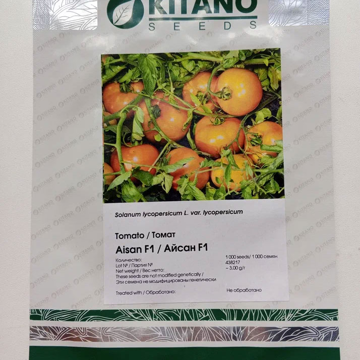 Томат Айсан - это средне-поздний, высокопродуктивный, крупноплодный томат. Растение мощное, компактное, хорошо развитый листовой аппарат защищает плоды от солнечных ожогов. Плоды округлые, выровненные, плотные, мясистые, средний вес плода — 220-250 г. Плоды насыщенного оранжевого цвета, как снаружи, так и внутри. Красивые плоды, один и в один, на протяжении всего периода плодоношения. На разломе мякоть сахаристая, вкус насыщенный, сладкий, богатый. Плоды долгое время держатся на кисти без потери вкусовых и товарных качеств. Отлично хранятся и без проблем транспортируются на дальние расстояния.