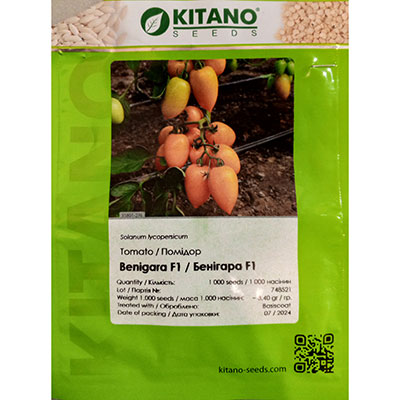 Томат Банигара (KS 1430) F1 - индетерминантное растение: ранний желтый томат. Мощное растение открытого типа, кисти красивой формы. Плоды - сливовидные, желтые. Средний вес плода - 100-120 г. Плотная консистенция мякоти, непревзойденные вкусовые качества, подходит для сбора кистями и по отдельности, отменная плотность плодов гарантирует транспортировку на дальние расстояния. Предназначение - реализация на рынке свежих овощей.
