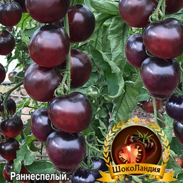 Раннеспелый (95-100 дней) сорт для пленочных укрытий и теплиц. Растение индетерминантное, сильнорослое, слабооблиственное, высотой до 2 м. Растение формирует длинные, очень нарядные кисти, с 10-12 плодами. Плоды округлые, гладкие, плотные, массой 50-70 г, имеют интересную переходную форму цвета при созревании: от зеленой - к чёрной - до фиолетово-коричневой, с ярким блеском. Мякоть красная, сочная, сладкая. Урожайность составляет 9-10 кг с м2. Ценность сорта: один из самых необычных и декоративных сортов в незрелом и зрелом виде, богат антоцианами и фенолом. Эти вещества укрепляют сердечную мышцу и оказывают профилактическое действие против инсульта и инфаркта, благоприятно воздействуют на нервную систему, повышают защитные свойства иммунной системы, полезны для мужского здоровья и долголетия. Рекомендуется для свежего употребления, замораживания, переработки.