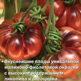 Томат Черничный Десерт - индетерминантный среднеспелый салатный сорт с вкуснейшими плодами малиново-фиолетовой окраски. Овощи богаты антоцианом и ликопином. Созревают через 110-120 дней с момента прорастания всходов. Растение среднерослое, высотой 130-150 см, нуждается в подвязке. На одной кисти формируется по 4-6 томатов. Плоды плоскоокруглые, слегка ребристые, весом 90-120 г. Плоды великолепного сладковатого вкуса, с легкой кислинкой и насыщенным ароматом, идеально подойдут для легких летних салатов, овощной нарезки и декорирования готовых блюд.