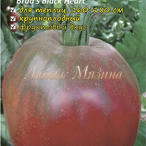 Томат Черное сердце Бреда - американский сорт темноплодных томатов. Его оригинальное название — Brad’s black heart. Изюминка Томата Черное сердце Бреда — в плодах. В них сочетаются красные, бордовые, лиловые и темно-зеленые оттенки. Мякоть темно-красная, по структуре мясистая, сочная, сладкая. Форма томатов нестабильна. Иногда они похожи на закругленное снизу яблоко, иногда — на сердце с «носиком». Помидоры завязываются кистями по 6-8 шт. массой 300-600 г, цвет бордово-фиолетовый. Вкус томатов сладкий, с фруктовым послевкусием. Аромат насыщенный томатный. Плоды используются в свежем виде, а также для изготовления соусов, паст, аджики. Купить томат Томат Черное сердце Бреда можно в нашем интернет магазине.