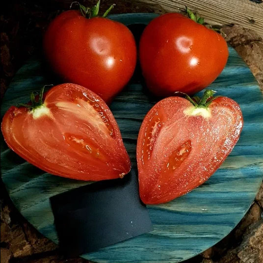 Томат Девичья грудь - среднеспелый, индетерминантный, урожайный сорт. В средней полосе рекомендуется выращивать в теплице. Куст высотой до 1,8 метра, лист обычного типа. Плоды сердцевидные, в стадии зрелости насыщенного красного цвета (малинового), весом 200-400 грамм (до 600 г), мясистые, с «арбузной» мякотью, очень вкусные. Семян в плоде мало. Эти помидоры хороши для свежего потребления, приготовления соков, соусов.
