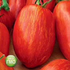 Плоды удлиненные, с «носиком», ярко-малиновые с тонкими желтыми полосками, плотные, мясистые, массой 70-80 г. Вкусовые качества отличные. Незрелые окраской напоминают небольшие арбузы. Основной тон у неспелых помидоров — светло-зеленый, редкие продольные полоски окрашены в темно-зеленый цвет. Урожайность Дон Жуана впечатляет: с одного куста собирают от 6,5 до 8 кг плодов. Это для низкорослого томата очень хорошая характеристика. Рекомендуется для цельноплодного консервирования.