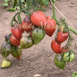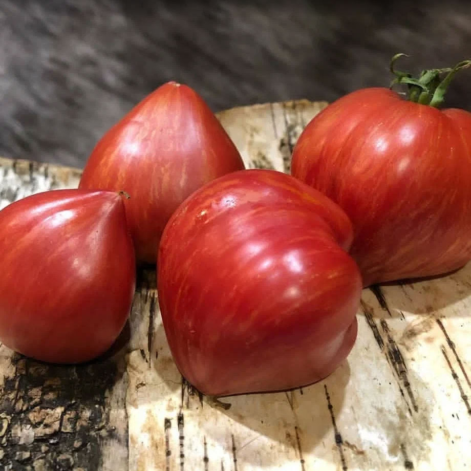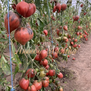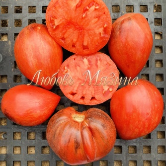 Томат Дробленое сердце изящной сердцевидной формы с острым носиком, массой 200-300 грамм и до 400 грамм. Малиновые с золотистыми, размытыми полосками. Мясистые, хорошего сбалансированного вкуса.