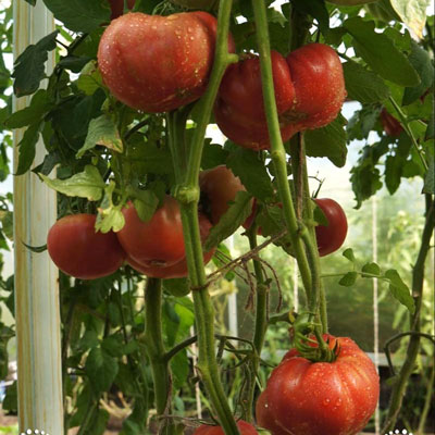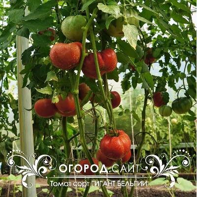 Томат Гигант Бельгии (коллекционный) - сорт среднеспелый, урожайный для теплиц, с крупными плодами обязательно понравится любителям сладких мясистых томатов с восхитительным старинным помидорным вкусом. В красивых тёмно-розовых плодах с нежным ароматом много сахара и мало кислоты. Вкус томата приятный, хорошо сбалансированный. Имеет индетерминантный тип роста, что означает его непрерывное развитие и плодоношение в течение всего сезона. Куст высокорослый, 1,8-2 м. Масса плода 300-500 г, может вырасти и до 1кг. Зрелый плод имеет темно-розовый цвет, а кожица прозрачная. Мякоть плодов плотная и мясистая с низким содержанием семян, идеально подходят для употребления в свежем виде, в закусках, нарезках или для приготовления свежевыжатых соков, сохраняют свои вкусовые качества даже после тепловой обработки. От высадки рассады в грунт до полной зрелости плодов проходит около 85 дней. Томат относится к категории сортов - из зрелого плода рекомендуется взять семена для посадки в следующих сезонах.