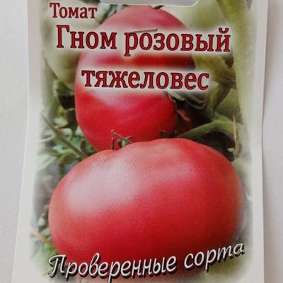Томат Гном Розовый тяжеловес – это коллекционный сорт. Крупные агрофирмы России семена этого сорта не выпускают. У нас на ТоматыПомидоры семена этого томата из частной коллекции. Упаковка зип пакет.