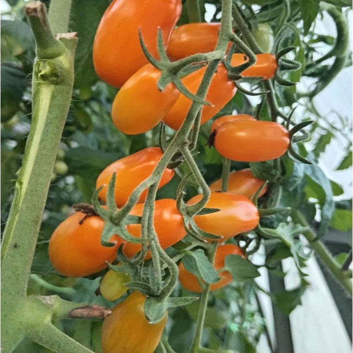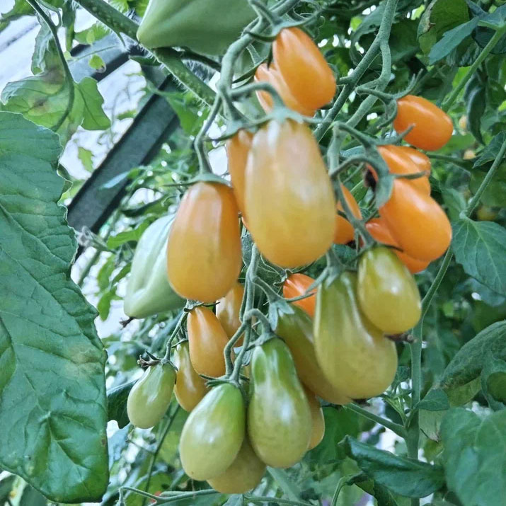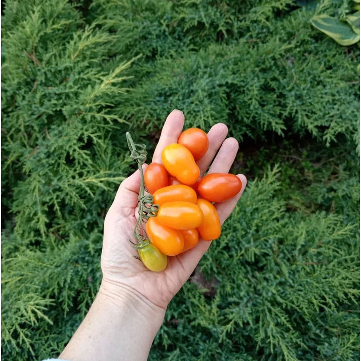 Грушевый Апельсин – сорт томата с оранжевыми плодами черри грушевидной формы, имеет испанское происхождение. Плоды больше пальчиковой формы черри, оранжевого цвета, плотные, сладкие, с тонкой, но прочной кожицей, весом до 20 грамм, кисти бывают простые, длинные и разветвленные.