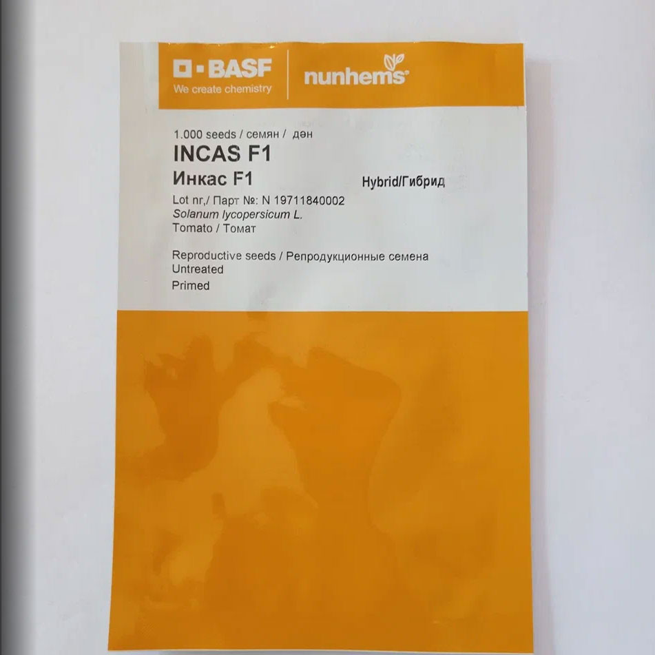 Томат Инкас F1 - ранний высокоурожайный гибрид детерминантного томата, период созревания 65-70 дней. Растение среднерослое, компактное. Плоды весом 90-100 г. Плотные, ярко-красные, перцевидные, мясистые, однородные. Подходит для любых видов переработки и свежего потребления. Один из лучших гибридов для консервирования цельных плодов без кожицы. Толерантны к солнечным ожогам, очень дружные в созревании, транспортируются на далекие расстояния без потери качеств. Сорт прекрасно адаптирован к самым различным зонам выращивания, хорошо реагирует на высокий агрофон. Устойчив к фузариозу рас 0,1 и вертициллезу.