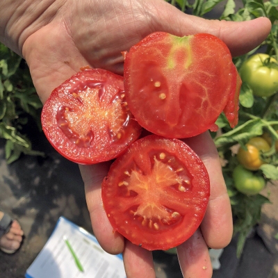 Томат Катя F1 - это ультраранний гибрид, от всходов до созревания 75-80 дней. Плод округлый и плоскоокруглый, гладкий, плотный, красный, без зелёного пятна у плодоножки, массой 110-130 г с отличными вкусовыми качествами. Отличается дружностью плодоношения в любых условиях выращивания. Устойчив к растрескиванию и вершинной гнили плодов, толерантен к ВТМ, альтернариозу и фитофторозу. Рекомендуется для раннего производства томатов в открытом грунте. Урожайность в открытом грунте 8,0-10,5 кг/м2 в пленочных теплицах 12,5-14,8 кг/м2.