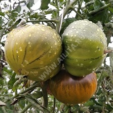 Томат Киви - высокоурожайный сорт, плоды которого не краснеют, а остаются в изумрудном цвете. Аромат обладает фруктовыми нотками, поэтому любители томатов выбрали для него такое название. Насладиться первыми, вкусными помидорами можно через 110 суток после всходов. При созревании изумрудные плоды приобретают красивый золотистый румянец. Высота куста до 1,5 метра. Томаты крупные, массой 260-300 г, достигают 500-600 г. Мякоть зеленая и желто-зеленая, сладкая, нежная, сахаристая. Кожица прочная, не трескается. Плоды подходят для свежего потребления и «томатных десертов», не для долгого хранения. Растения индетерминантные, завязывают отличный урожай в открытом и защищенном грунте.