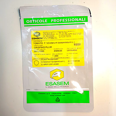 Томат-сливка размером 35-40 грамм от компании Esasem. Плоды бордово-коричневого цвета с зелеными штрихами и насыщенным красным цветом мякоти, все выровненные по форме и размеру, на кисти 12-18 шт. Дружное созревание, есть возможность убирать кистями. Используются для употребления в свежем виде и для переработки. Средняя урожайность составляет 3 кг с одного растения.