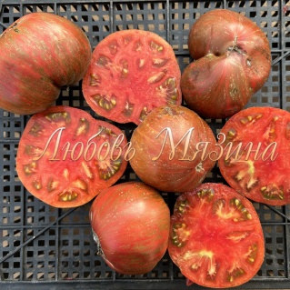 Томат Кровавая Луна - американский сорт, такое название получил из-за соотношения цветов кожицы и мякоти у плода. Плоды одинакового размера, цвет незрелых плодов болотно-зелёный, при полном созревании плоды красные с зелено-коричневой полоской. На разрезе насыщенно-красные, как Луна в полное лунное затмение, многокамерные, сочно-мясистые, вкус громкий, насыщенный, многогранный, с привкусом тропических фруктов. Это придает им особую привлекательность и оригинальность. Индетерминантный сорт, куст невысокий, 120-160 см, что позволяет выращивать его как в открытом грунте, под дугами, так и в теплице. Сорт среднеспелый, срок созревания, 110-120 дней. Крупноплодный, даже на верхних кистях. Плоды, набрав свой размер зреют быстро. Хорошо завязывает и сохраняет плоды, отсюда и урожайность, 12-15 плодов по 150-350 г с куста. Благодаря плотной консистенции, применение универсальное и в салаты, и на переработку. У сорта хорошая устойчивость к болезням.