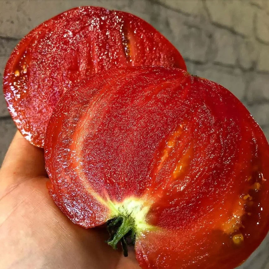 Индетерминантный, высокорослый (до 2 м), среднеспелый сорт с длительным периодом плодоношения. Показывает прекрасную завязываемость плодов и высокую урожайность. Лист простой, через 3 листа – кисть. Томаты имеют чуть вытянутую форму с заостренным носиком, напоминающую в разрезе сердце, мясистые, малосемянные, вкусные. Весом 150-300 грамм. Плодоносит до поздней осени. Томаты можно потреблять в свежем виде, а также перерабатывать на соки, пасты, кетчупы.