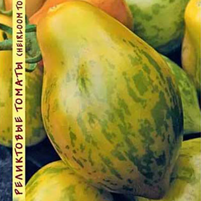Сорт среднеспелый, детерминантный. Томаты Майкл Поллан необычной окраски - золотистые с зелеными прерывистыми полосками, сочные, со сладким вкусом и характерным ароматом, очень урожайные – в кисти часто бывает 25-30 плодов. Плод овальной формы с носиком, плотный, блестящий, массой до 100 г. Мякоть изумрудного цвета, очень нежная, сладкая.