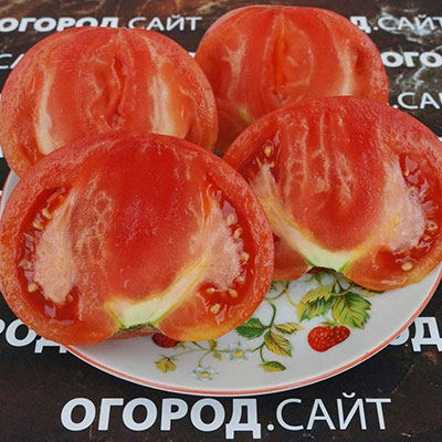 Томат Могучан Степанова – это среднеспелый сорт, который отличается мощным кустом и превосходными характеристиками плодов. Плоды малинового цвета имеют плоскоокруглую форму с плечиками и достигают веса от 300 до 600 граммов. Некоторые плоды из первых кистей могут достигать веса до 1000 граммов. Количество плодов в одной кисти составляет примерно 4-6 штук. Мякоть является очень плотной и мясистой, не содержит прожилок и почти не имеет семян. Это делает сорт ещё более привлекательным для потребителей. Вкус этих помидоров можно описать как арбузный, что делает их очень приятными для употребления в свежем виде или использования в приготовлении различных блюд.