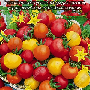 Томат Балконный - это смесь ультраранних, низкорослых сортов томатов с различной окраской плодов. Идеально подходит для выращивания на балконе и в качестве уплотнителя посадок между высокорослыми сортами томатов. Начинают плодоносить на 85-90 день после всходов. В смесь входят сорта: Монетка (плоды желтые), Пуговка (плоды красные) и Оранжевая шапочка (плоды оранжевые). Растения детерминантные, высотой 45-60 см, штамбовые, могут выращиваться без подвязки. Томатики округлые, массой 10-15 г, очень сладкие и ароматные. Отлично подходят для приготовления и украшения салатов и различных блюд. Цветные помидорки подходят для консервирования и красиво смотрятся в не больших банках.