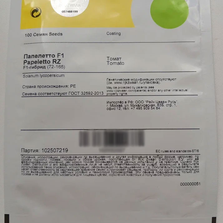 Для выращивания этих томатов на рассаду рекомендуется сеять семена с 10 по 15 марта или с 30 марта по 5 апреля за 45-55 дней до высадки в закрытый грунт. Если же вы планируете выращивать их в открытом грунте, то лучше сеять семена с 10 по 15 апреля за 35-40 дней (максимум 45 дней) до высадки рассады. Чем ближе к светлым и тёплым весенним дням вы посеете семена, тем быстрее будут проходить все фазы развития рассады. Если посеять семена слишком рано, то рассада может перерасти, что негативно скажется на её качестве. Томаты Папелетто формируют мощную корневую систему и обладают большим набором устойчивостей к различным заболеваниям. Гибрид рекомендуется формировать в 2–3 стебля. Гибрид раннеспелый, растение сильное индетерминантное, с компактными кистями. Отличаются большим набором устойчивостей к различным заболеваниям: ToMV:0-2/Fol:0/For/Va:0/Vd:0/Si