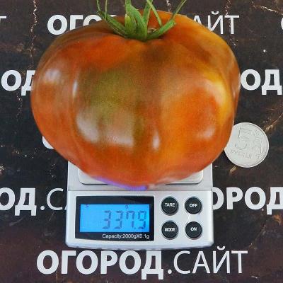 Сорт среднеспелый, индетерминантный (кусты высотой до 180-200 см). Куст мощный, ничем не болеет, плодоносит длительно, хорошо выносит полутень, отлично вяжет, помидоры крупные доверху. Кисть простая, состоит из 4-6 завязей. Плоды плоскоокруглые с ребристыми плечиками, вишнево-шоколадные снаружи, на разрезе - тёмная вишня. Масса плодов 300-500 грамм, иногда до 800 грамм. Вкус томатов насыщенно-сладкий с лёгкой пряностью и фруктовыми нотками. Мякоть плотная, с малым количеством жидкости, малосемянная. Томаты универсального назначения: отменно хороши для салатов и бутербродов, на зиму можно готовить из них пасты, соки, густые соусы.