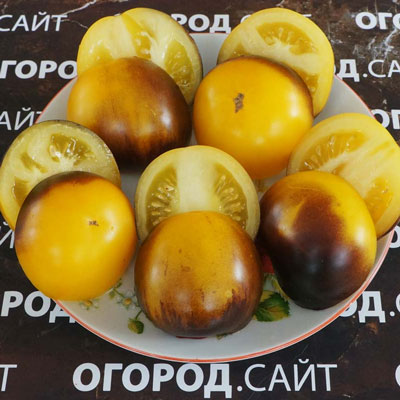 Томат Шоколадный Мармелад - это коллекционный сорт. Крупные агрофирмы России семена этого сорта не выпускают. У нас на ТоматыПомидоры семена этого томата из частной коллекции. Упаковка зип пакет. Томат Шоколадный Мармелад среднеспелый, низкорослый сорт для выращивания в открытом грунте и в теплице. Урожай формируется за 110-115 суток. Первые плоды снимают с куста в середине августа. Куст раскидистый низкорослый, до 80 см в высоту, детерминантный. После завязывания 5-6 кистей, рост куста прекращается. Во время выращивания не требуется формирование кустов, но подвязка к опоре обязательна. Чтобы получить урожай раньше, необходимо убрать пасынки до первой цветочной кисти. Плоды у сорта округлой формы, по достижении биологической спелости они желто-коричневые с антоциановыми пятнами и штрихами. Мякоть жёлтая, мармеладная, очень вкусная, сладкая, с еле ощутимой кислинкой. Помидоры среднего размера, массой 80-100 г. Урожайность до 2 кг товарных плодов. Употребляют их в основном свежими или перерабатывают для получения соков и паст. Место для посадки выбирают максимально солнечное, открытое, но защищенное от ветра. Устойчив к томатным заболеваниям, практически не болеет.