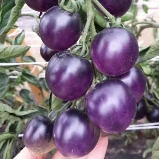 Томат Синяя гроздь F1 - индетерминантный среднеранний гибрид с плодами, играющими на солнце всеми оттенками голубого и синего цвета! Плоды округлые, выровненные, по 25 г каждый, не только экзотично-декоративны, но и удивительно полезны благодаря повышенному содержанию антоцианов. Очень красивый куст, можно выращивать в теплице и открытом грунте. Томат Синяя гроздь F1 имеет спецефический вкус, чуть напоминающий сливу. Хранится до ноября.