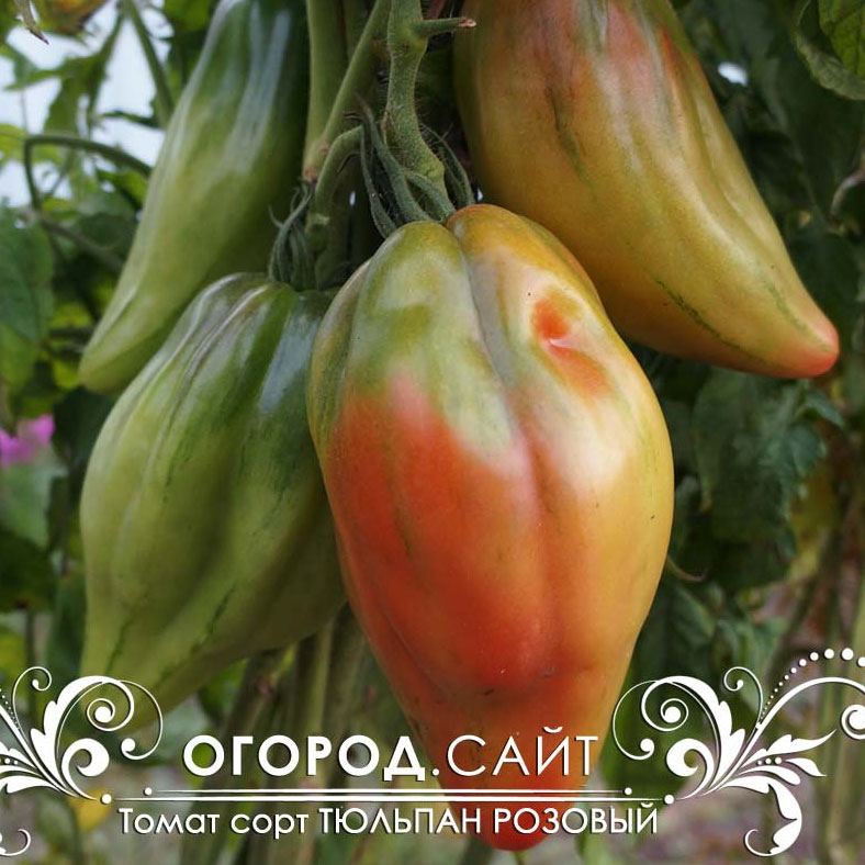 Высокорослый, среднеспелый сорт с плодами необычной формы. Помидоры перцевидной формы, с гранями, часто удлиненные, по форме напоминают нераспустившийся цветок тюльпана. В стадии зрелости они насыщенного розового цвета, как будто с перламутром. Средний вес плода 200-400 грамм. Вкус сбалансированный, приятный. Мякоть мясистая, малосемянная.