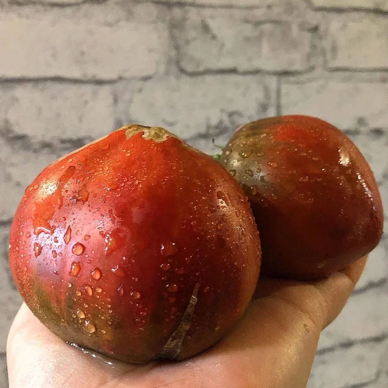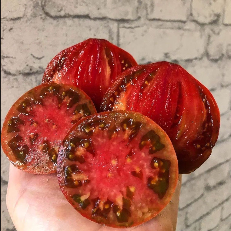 Красивейший сорт с необычной окраской. Индетерминантный, высокорослый, среднеспелый, урожайный. Высота куста в теплице до 1,8 м, в открытом грунте - до 1,4 м. Плоды необычного вишнево-сиреневого цвета, округло – сердцевидной формы, малосемянные, средний вес от 300 до 500 г и более (при формировке в 2 ствола - до 500 г, при формировке в 1 ствол - 1000-1200 г). Мякоть темно бордовая, мясистая, сладкая и ароматная. Подходит для свежего потребления, для приготовления соков, густых паст, кетчупа, соусов. Сорт ценится за необыкновенно красивую окраску, высокую устойчивость к болезням и высокую урожайность.