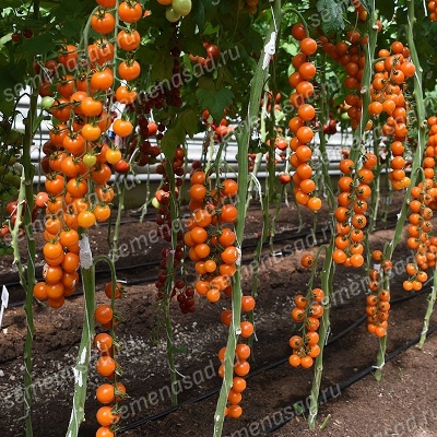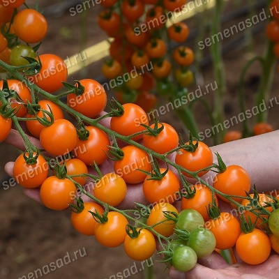 Томат Волшебная арфа F1 - это высокоурожайный индетерминантный среднеранний, гибрид для защищенного грунта. Требует формирования и подвязки. Плод округлый, диаметр 3 см, массой 20-25 г, желто-оранжевый, блестящий, плотный, сладкий. Кисть красивая, двусторонняя, плотная, с 16-18 плодами. Пригоден для уборки целыми кистями. Устойчив к ВТМ, фузариозному увяданию, кладоспориозу, стрессовым условиям. Рекомендуется для употребления в свежем виде и цельноплодного консервирования.
