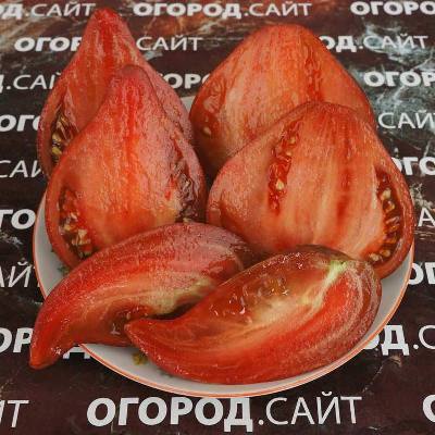 Томат Восставший Звездный Истребитель Прайм носатый - это всё тот же Восставший Звездный Истребитель Прайм сердцевидный, но более изящной остроносой формы. Сорт появился от скрещивания Xanadu Picasso x RHK GWR Heart. Среднеспелый, индетерминантный сорт. Вес плодов 200-300 гр. Окраска очень интересная, разноцветные замысловатые полоски и штрихи по всему плоду и с антоцианом на плечиках и бочках. Мякоть тёмно-красно-бордовая. Вкус у сорта замечательный, отлично сбалансированный с ярко выраженной сладостью и сильным классическим томатным послевкусием. Длительное плодоношение, до заморозков. Урожайность отличная даже в легком затенении. Универсального назначения.