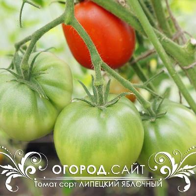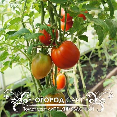 Томат Яблочный липецкий - среднеспелый, индетерминантный сорт томата с очень гармоничным вкусом. Рекомендован к выращиванию в теплицах в средней полосе, в открытом грунте — в южных регионах. Куст мощный, среднеоблиственный, высотой до 1,8 метра в теплице, чуть меньше (около 1,6 м) в ОГ. Плоды овально-округлой формы, средней плотности, в стадии зрелости красного цвета, весом 150-300 грамм. Используют для свежих салатов, а также для консервации.