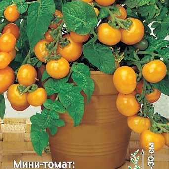 Томат Жемчужина желтая F1 - скороспелый (85-90 дней) очень декоративный сорт. Растение штамбовое, низкорослое, до 20-30 см, с красивой плотной кроной. Не требует пасынкования. Кисти нарядные, с 5-7 выравненными, янтарного цвета плодами. Одновременно на растении созревает до 30-35 вкусных и сладких плодов, по 15-20 г каждый. Ценность сорта: компактность, устойчивость к недостаточной освещенности. Очень декоративен. Идеально подходит для выращивания в горшках на балконах, в комнатах, зимних садах, патио-двориках. На грядках может высаживаться как растение-уплотнитель. Рекомендуется для употребления в свежем виде, используется в консервации и как украшение блюд.