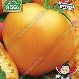Новый сердцевидный томат яркой солнечной окраски. Крупные плоды массой 300-350 г словно налиты медом. Раннеспелый гибрид, период от всходов до начала созревания первых плодов 90-95 дней. Гладкие и плотные многокамерные «сердца» имеют насыщенный сладкий вкус. Мякоть содержит большое количество природных антиоксидантов – бета-каротина и фолиевой кислоты. Доказано, что данные вещества из желтых томатов усваиваются лучше, чем из красных. Сок из таких плодов признается лечебным. Урожайность в пленочной теплице 18-20 кг/кв.м.