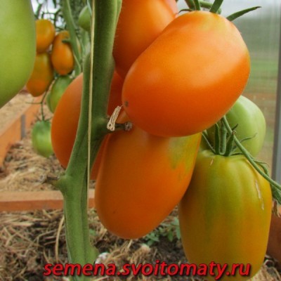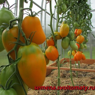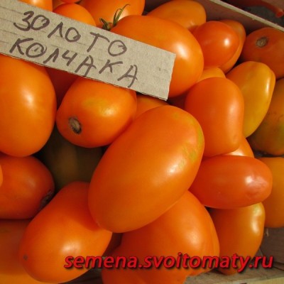 Томат Золото Колчака - индетерминантный, высокорослый (1,8-2м), среднеспелый. Очень красивый, суперурожайный сорт с превкуснейшими плодами. Рекомендован для теплиц и открытого грунта. Нуждается в подвязке к опоре, формировать лучше в 2 стебля. Плоды крупные оранжевые, сливовидные, до 150 г. Великолепен в салатах, свежих нарезках.