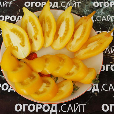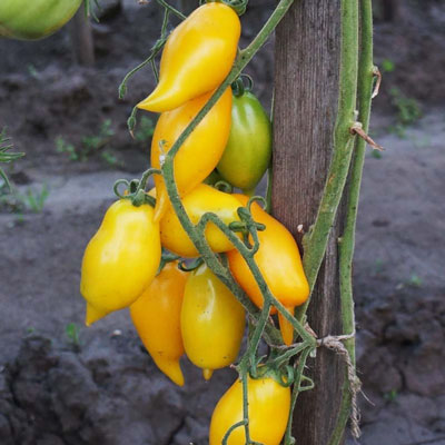 Томат Золотой лимон (Сокровище) - это раннеспелый 95-105 дней сорт. Индетерминантный. Растение мощное, облиственное, около 1,8 м. Лист узкий. Растение формирует сложные кисти, несущие на себе 10-30 плодов. Плоды необыкновенной красоты: золотистые, блестящие, похожие на золотые лимоны с крупным носиком, массой около 80-120 г, 2-3 камерные, мясистые, приятного сладковатого вкуса. Замечательны для свежего употребления и красивого консервирования. Купить томат Золотой лимон можно в нашем интернет-магазине семян. Очень похож на томат Цыпочка.